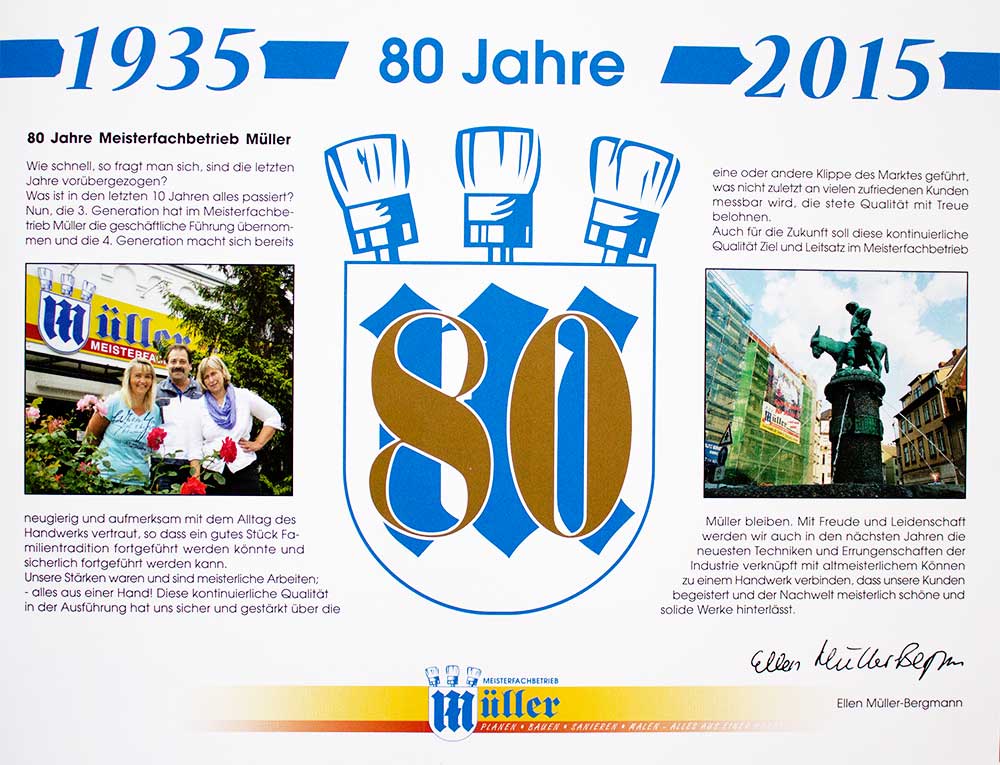 1935 gegründet, wird der Meisterfachbetrieb mittlerweile in der 3. Generation geführt. Mit insgesamt ca. 20 Mitarbeitern betreuen wir die unterschiedlichsten Projekte und Objekte, vom Einfamilienhaus bis hin zu denkmalgeschützten Gebäuden in ganz Sachsen-Anhalt.